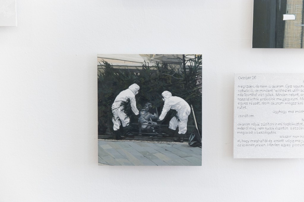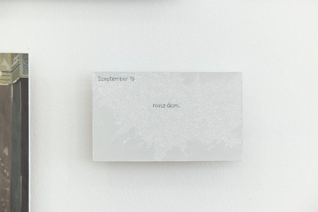The exhibition, titled 2016.08.11. -, is dealing with the notion of memory from the viewpoint of how we perceive our surrounding after the death of a person. The connection of the small scaled gouache paintings show the grieving process and the processing of loss.
